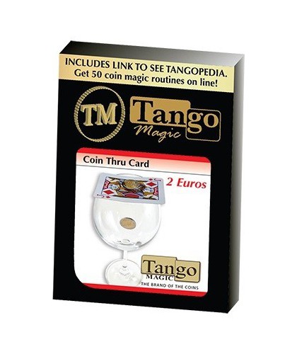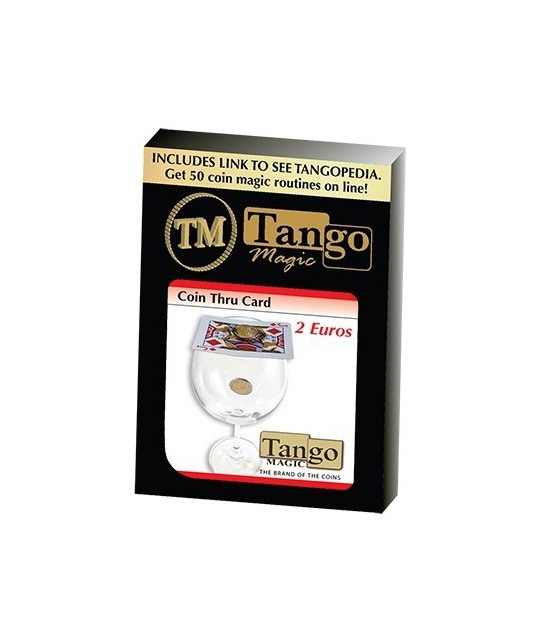 Un efect incredibil marca Tango. Magicianul prezinta o carte de joc si o moneda de 2 Euro. Ambele poti fi examinate. Cartea de joc este pusa deasupra unui pahar si moneda deasupra cartii de joc. Moneda de 2 euro va trece intotdeauna prin cartea de joc si si va ajunge in pahar.Una din monedele din set prezinta urme de uzura.