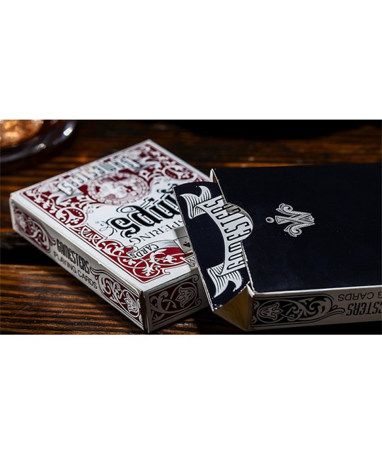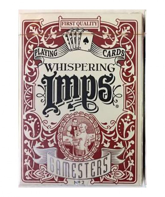Daca doresti sa ai parte de un joc cu carti special, foloseste aceste carti de joc. Sunt premium si fiecare pachet a fost conceput pentru o experienta deosebita. Pe fata, cartile au adaugate indexul si simbolul la dimensiune mai mica si pozitionate pe lateral in colt. Spatele este rosu cu sigla vestita a celor de la Whispering Imps.