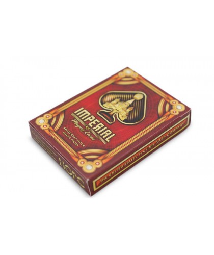 Cartile de joc Imperial sunt premium, inspirate de pretiosul Fabergé Eggs. 100% custom artwork cu o varietate de teme si de design ale celebrului ou.Cutia are design rosu intens, aurita in interior, asa cum este si surpriza ascunsa in Oul Faberge.Simbolul Romb are o vibratie de natura/fantezie/poveste cu elfi.Simbolul Trefla este inspirat din mozaicurile grecesti, culori si forme geometrice. Vulturul rusesc cu doua capete este punctul central al Inimii Rosii. Inima neagra are design in stil baroc si gotic.Un pachet pentru cei care pretuiesc arta.