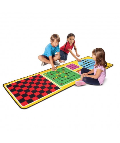Joc covoras 4 in 1 - Melissa and DougCovoras cu 4 design-uri de jocuri clasice: Tic-Tac-Toe, Checkers, Nine Men's Morris si Solitaire.Astfel exista o multime de moduri de invatare si de joaca pentru copii.Setul include 36 de piese de joc din lemn cu doua fete, precum si instructiuni detaliate de joc.Covorul dreptunghiular este tesut din material durabil, rezistent la pete. Se poate spala la masina de spalat.Pe spatele covorului este un suport antiderapante ce asigura siguranta pentru toate suprafetele de podea.Jocul promoveaza dezvoltarea cognitiva, de rezolvare a problemelor si dezvoltarea abilitatilor motorii fine.Dimensiuni: 199 cm L x 67cm W