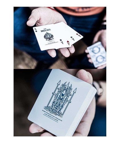 Acest pachet de carti de joc a fost realizat in cinstea cunoscutului realizator de film si magician George Melies si este inspirat de filmul realizat de acesta A trip to the moon. Poate fi un cadou excelent pentru iubitorii de film, cardistry si de iluzionism.