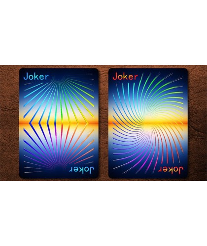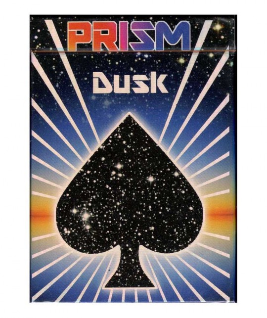 Cartile de joc Prism Dusk sunt speciale prin colorit dar si prin modul in care au fost create, folosindu-se cerneala UV lucioasa pe fete. Cutia este la fel de colorata si stralucitoare iar spatele cartilor de joc surprinde tonurile intunecate ale unui apus de soare clar, cu soarele nuribund in centru, palind intr-un albastru profund si in cele din urma un negru inchis imprastiat cu stele.