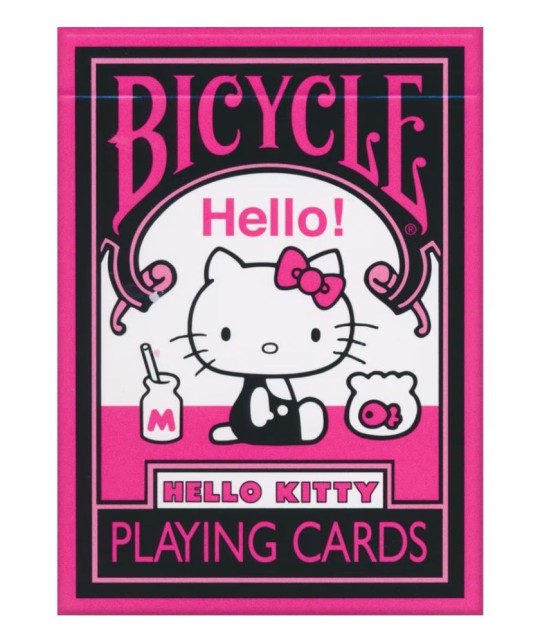 Cărțile de joc Bicycle Hello Kitty Black & Pink combină designul kawaii cu eleganța clasică Bicycle. Calitate premium, finisaj Air-Cushion®, ediție perfectă pentru colecționari și fani Hello Kitty.