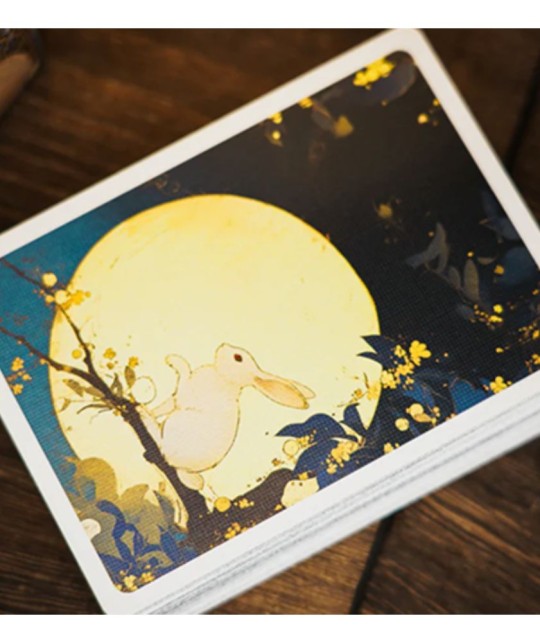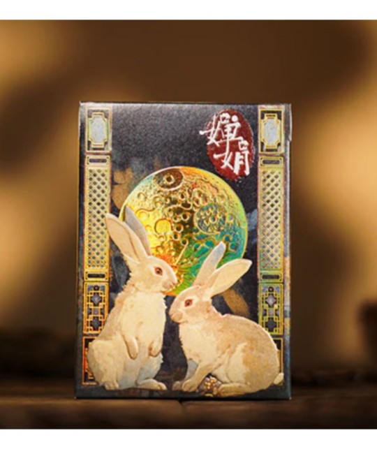 Round Moon Playing Cards by TCC celebreaza Festivalul Mid-Autumn, simbol al reuniunii, norocului si armoniei in traditia chinezeasca. Cutia embosata cu folie aurie holografica reda in detaliu iepurii de jad sarind sub luna plina, inconjurati de copaci de osmanthus si motive clasice orientale.