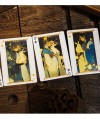 Fetele cartilor includ personaje in costume traditionale si simboluri antice ale frumusetii si echilibrului, toate pe un fundal elegant in stil pergament.
